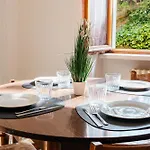 Quietude - Aosta Apartment overlooks the garden and comprises a balcony, a terrace, and a fully equipped kitchen with air conditioning.